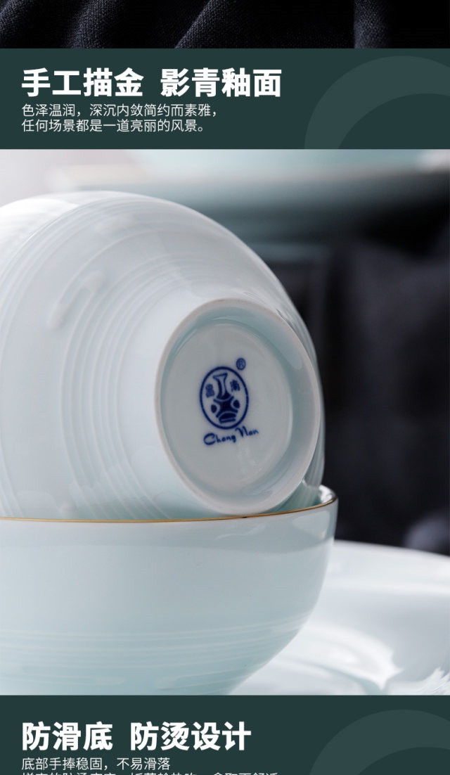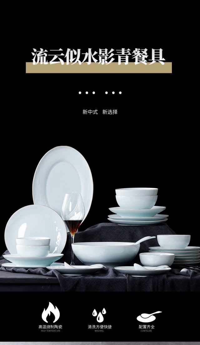 流云似水影青餐具