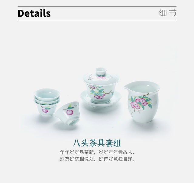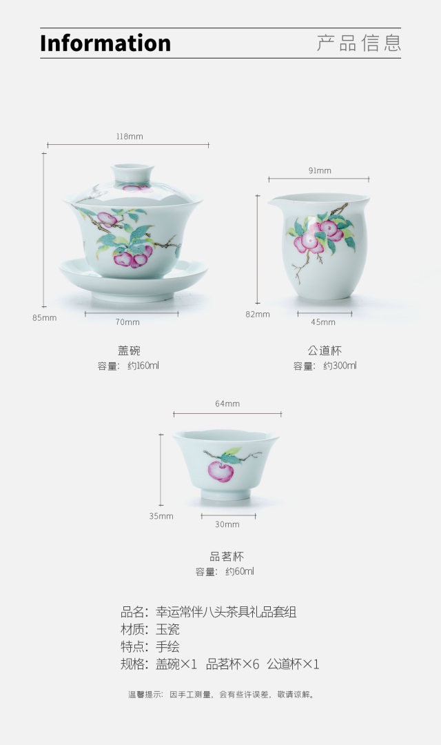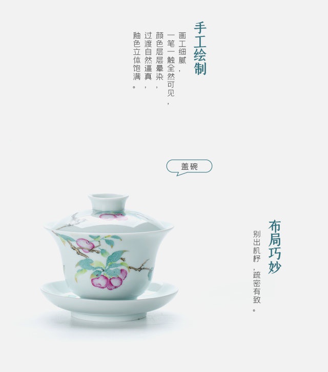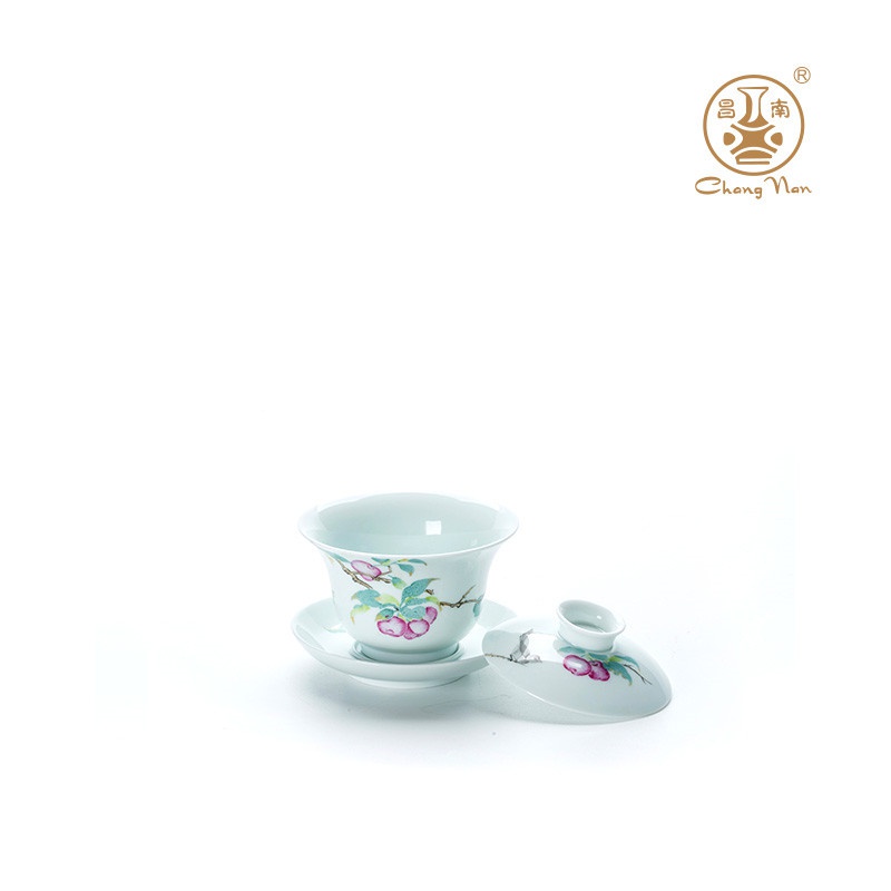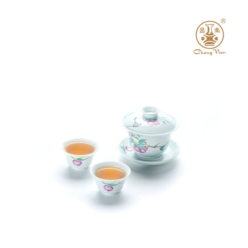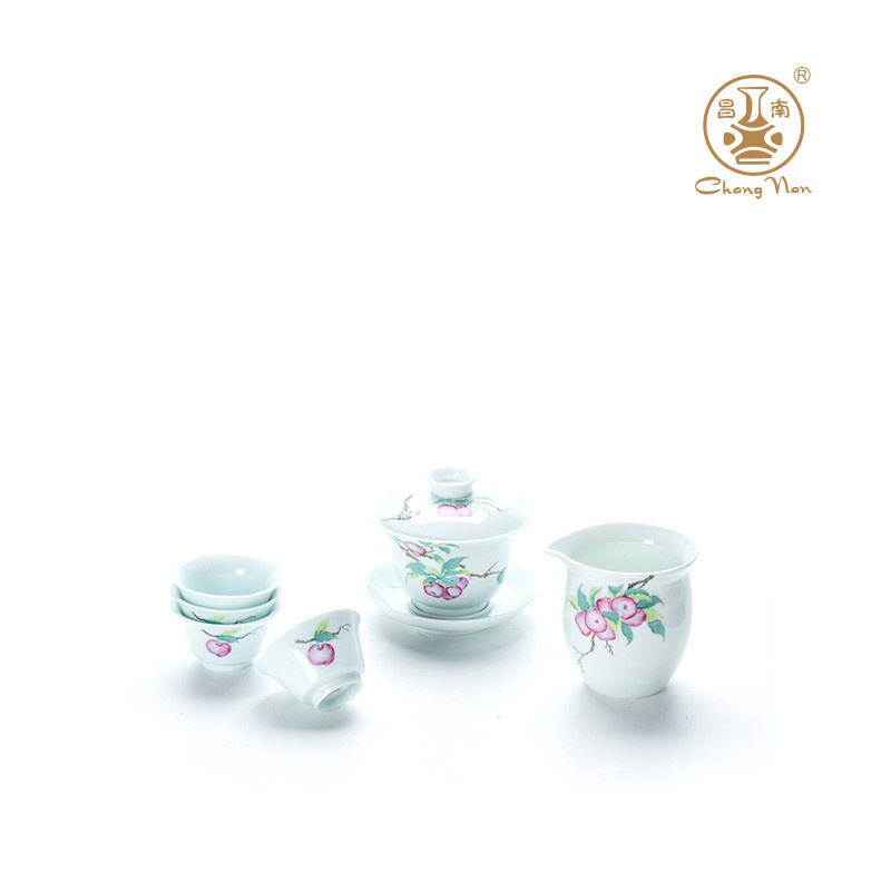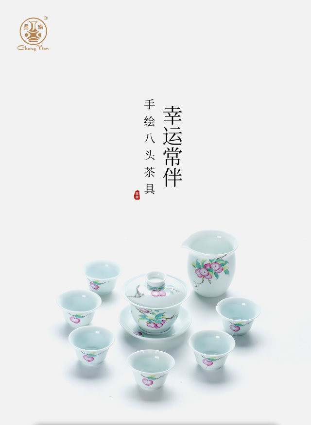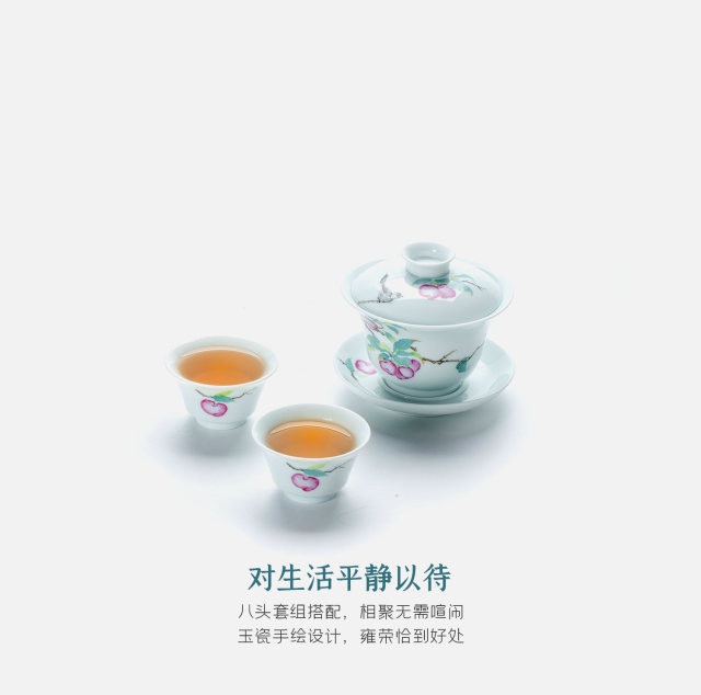 玉瓷手繪“幸運(yùn)常伴”8頭蓋碗茶具套裝